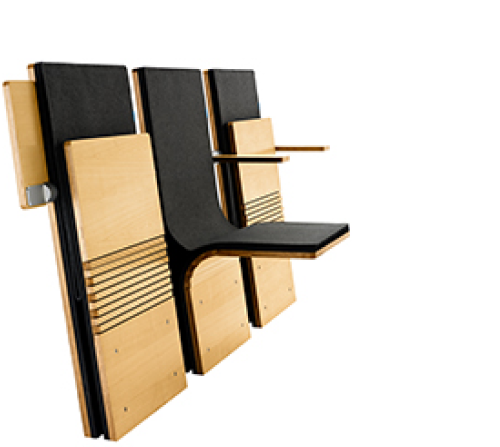 まず、すべて木製、超コンパクト、折りたたみ式の講堂の座席。 現在、SediaSystemsを通じてライセンスおよび製造されています。
